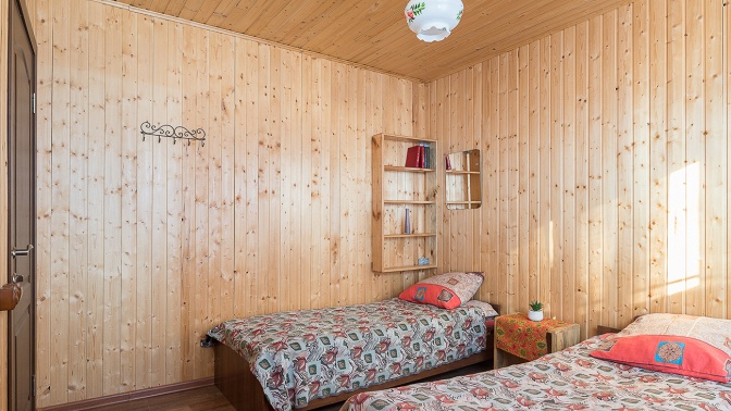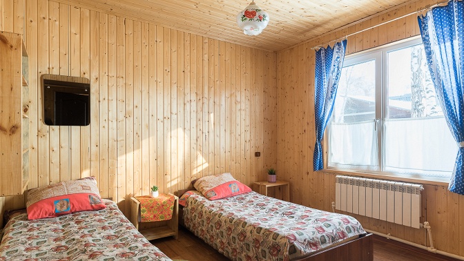 — две изолированные комнаты (в одной комнате двуспальная кровать, во второй — две односпальные кровати);